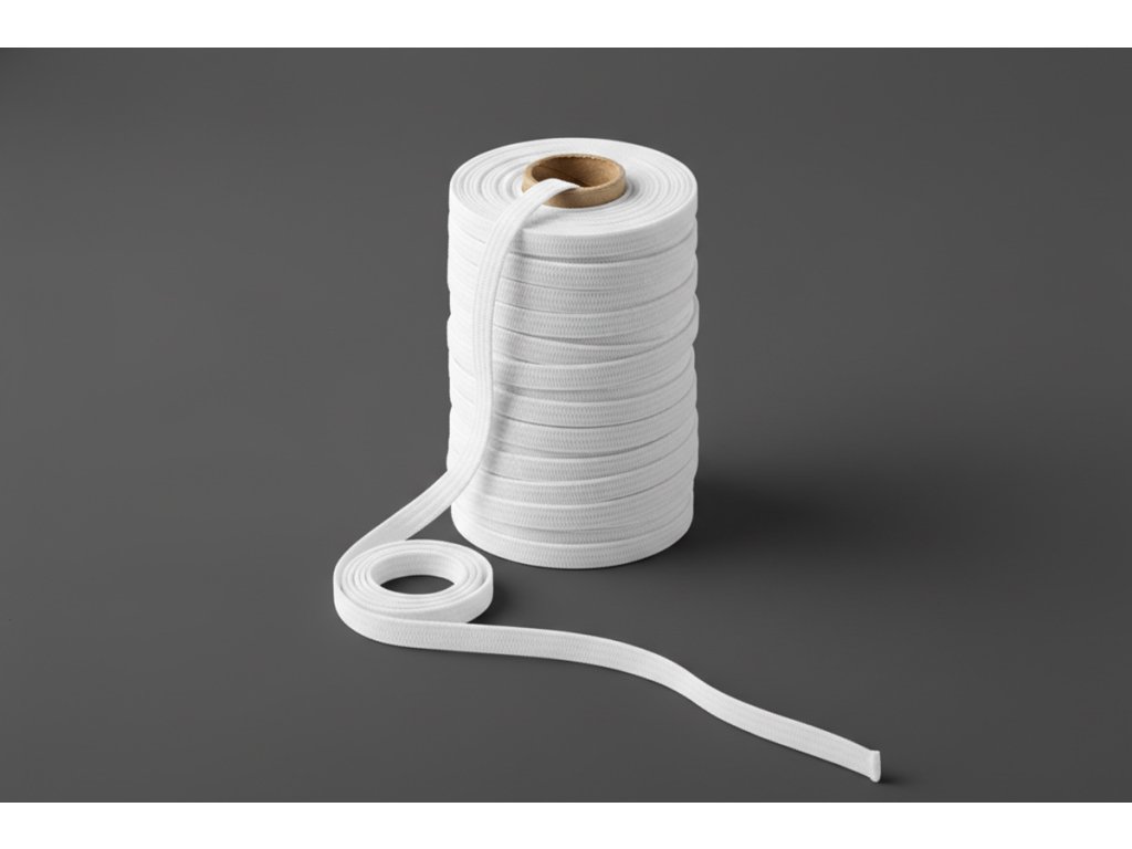 Tkana bílá guma (pruženka) z polyesteru – ideální elastická páska pro vaše šití.