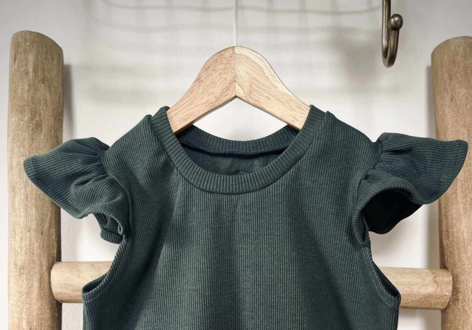 Ideálním dětským materiálem je žebrovaný úplet, který je jemný a pružný. Látka s žebrovanou strukturou se umí perfektně přizpůsobit dětskému tělíčku, může se roztáhnout, ale když to není potřeba, tak pěkně drží tvar. Pro miminka, která nemá nikde nic tlačit je žebrovaná metráž naprosto ideální materiál.