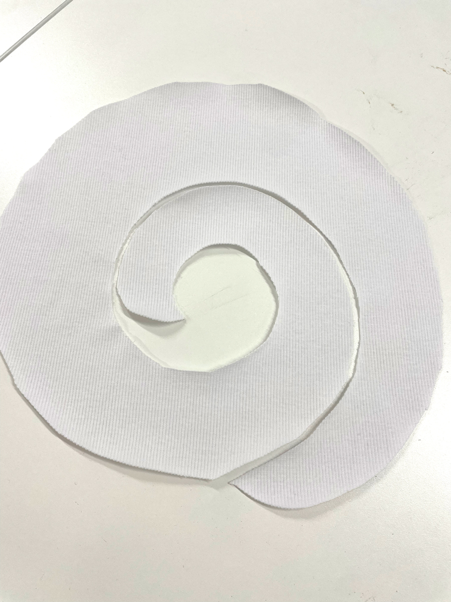 Šablonu střihu ve tvaru šneka jsem položila na látku, obkreslila a vystřihla díl z látky. Jestli nemáš ideální barvu látky, můžeš se porozhlédnout u nás na funny-bunny.cz, kde máme mega širokou škálu barev metráže.