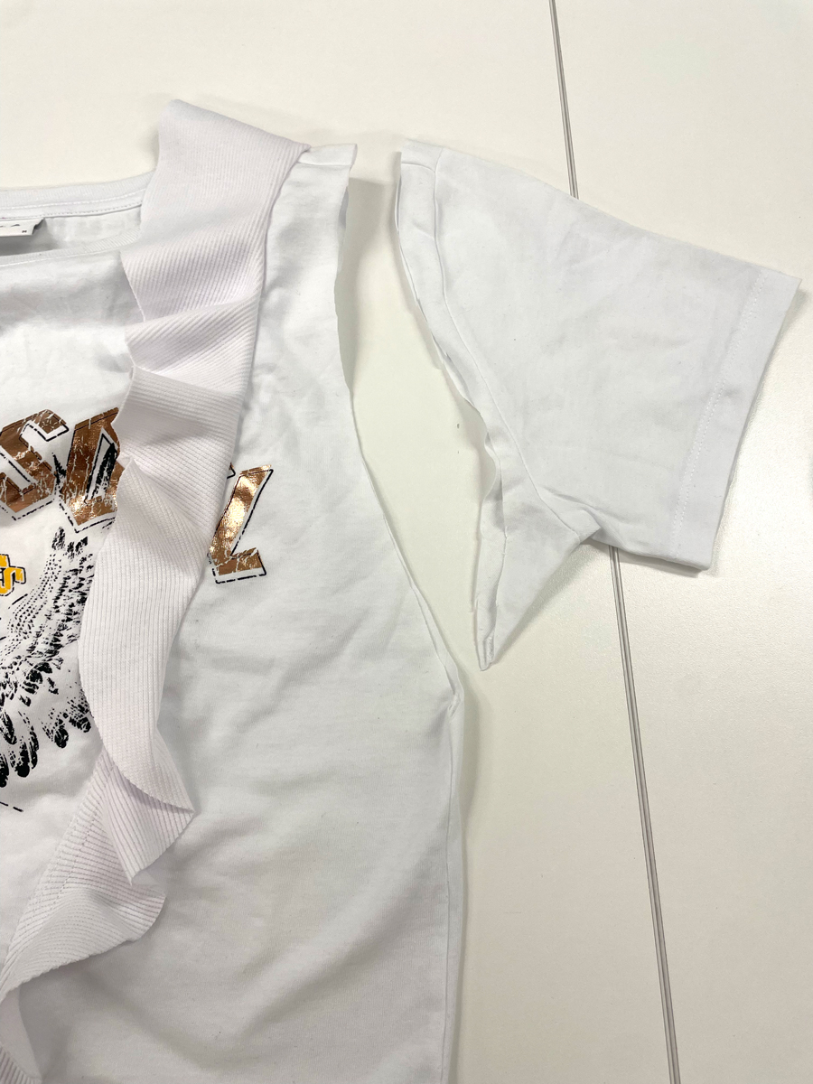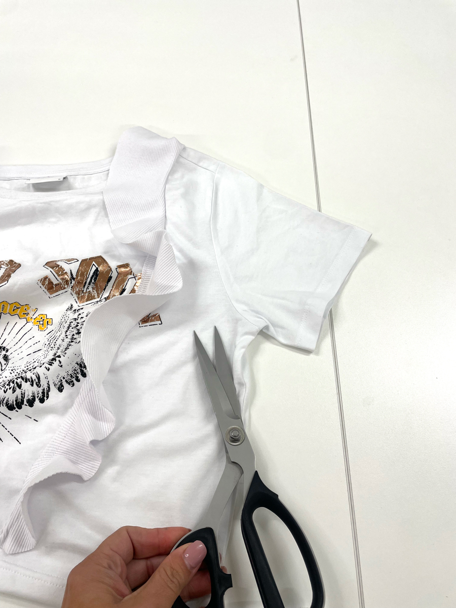 Máme pro vás udržitelnou módu v praxi: určitě máte v šatníku tričko, které už tak často nenosíte, ale vyhodit ho nechcete. Tak co s ním? Přešijte své staré tričko na nové a hezčí! V crop tričku s volány budete prostě šmrncovní. Máme pro vás střih na volán zdarma!