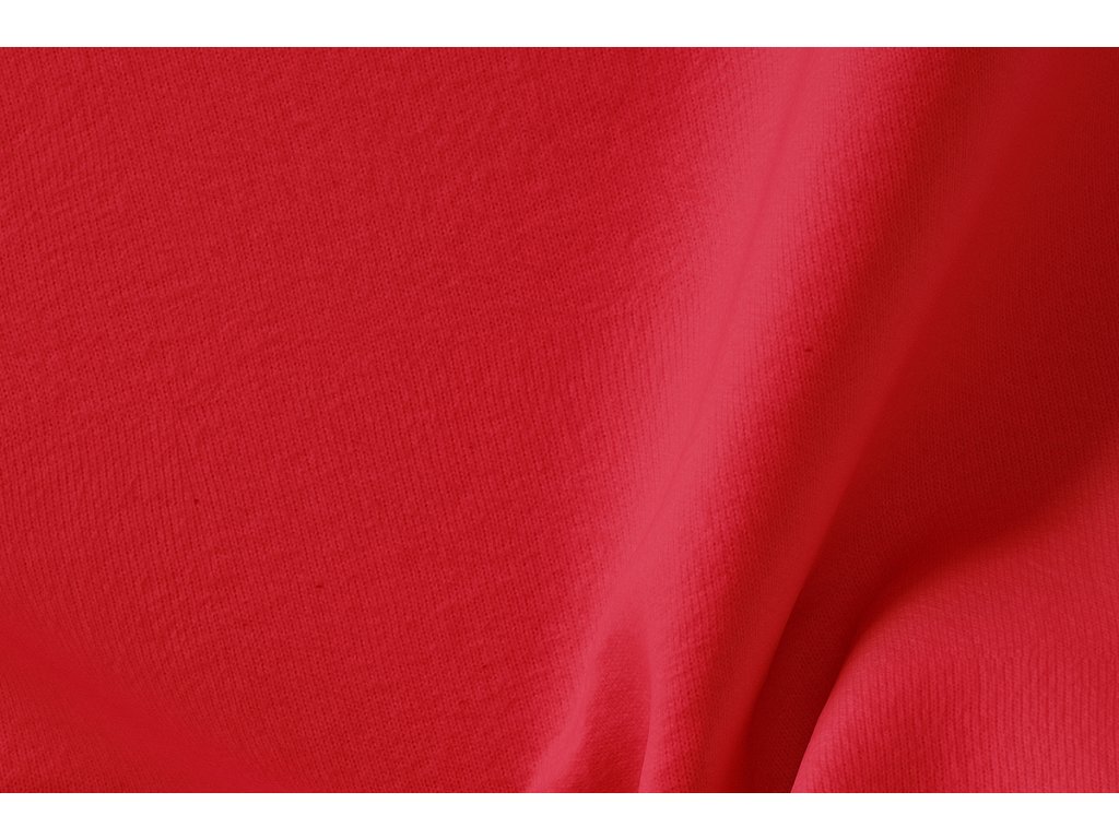 Jak vypadá sytě červená teplákovina s nepočesanou rubovou stranou?