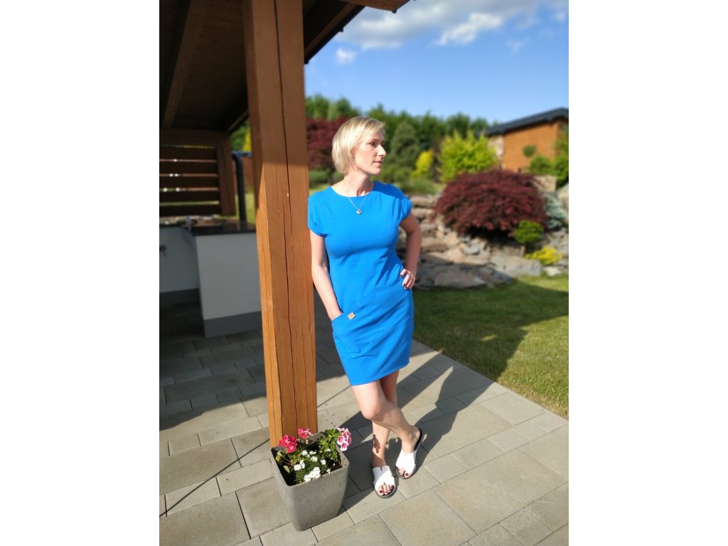 Nepočesaná jednobarevná teplákovina v chrpově modrém odstínu s příměsí elastanu.