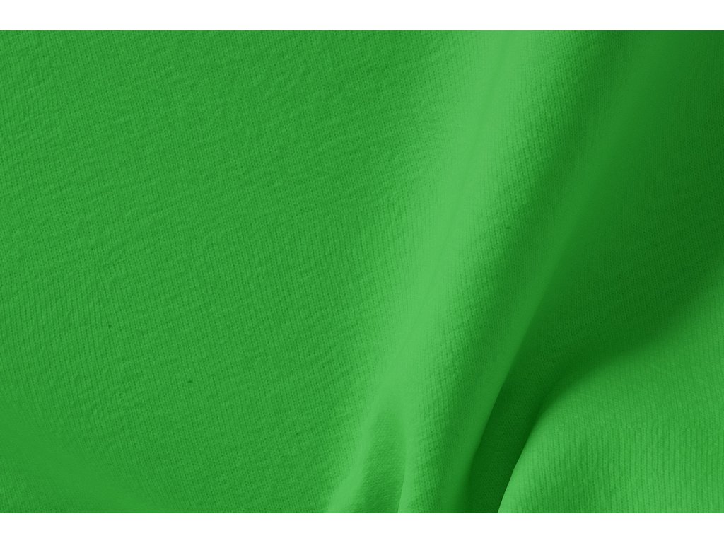 Jak vypadá hráškově zelená teplákovina s nepočesanou rubovou stranou?