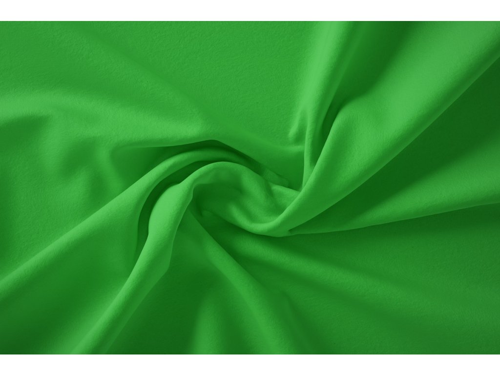 Nepočesaná bavlněná teplákovina v hráškově zeleném odstínu s elastanem nebo polyesterem.