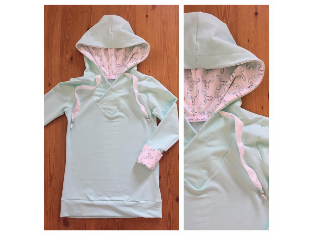 PŘED ŠITÍM: před samotným šitím doporučujeme látku jen vysrážet žehličkou, ale rozhodně neprat (více si přečtěte zde) – hrozí tam mnoho nevratných úskalí a problémů. U teplákoviny je třeba počítat se srážlivostí, která může být až 6 %.