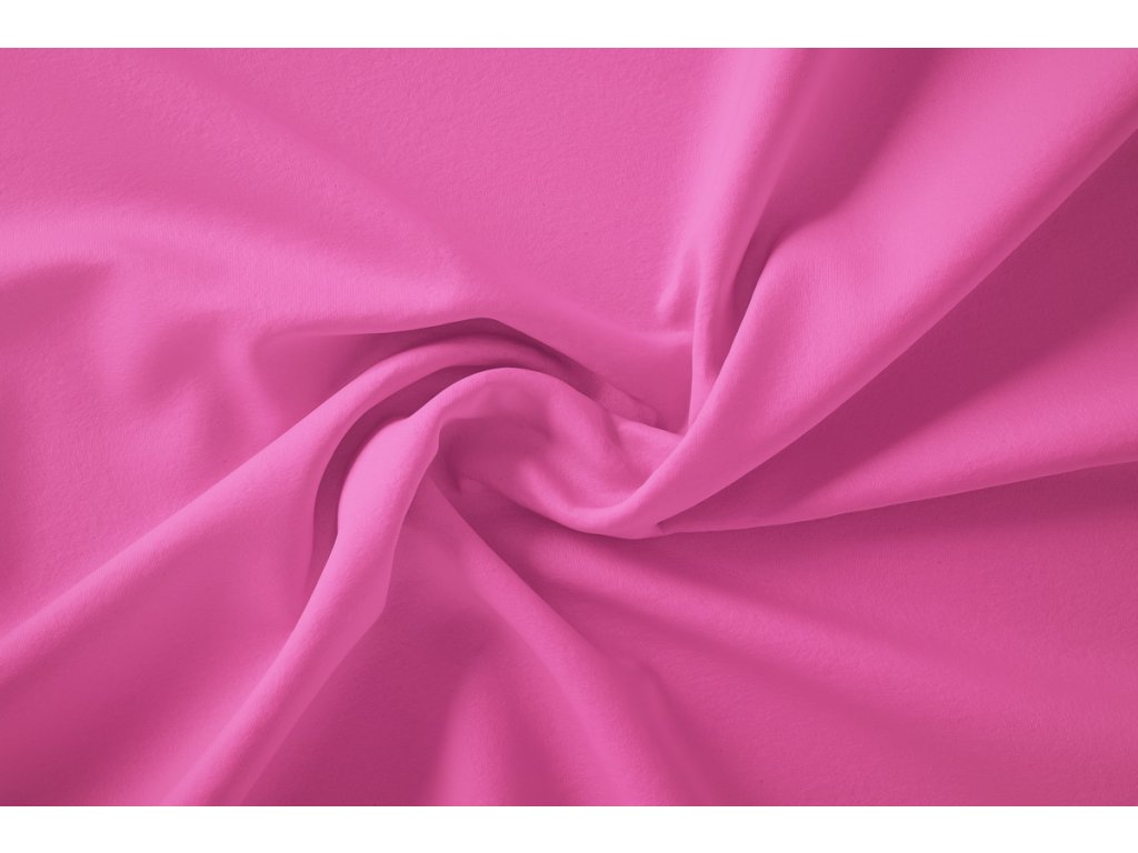 Hřejivá růžová teplákovina ve složení bavlna s elastenem nebo polyesterem s počesanou rubovou stranou.