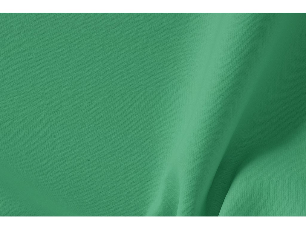 Zelená počesaná teplákovina Smaragd vyrobená z bavlny s malou příměsí elastanu nebo polyesteru pro lepší vlastnosti látky.