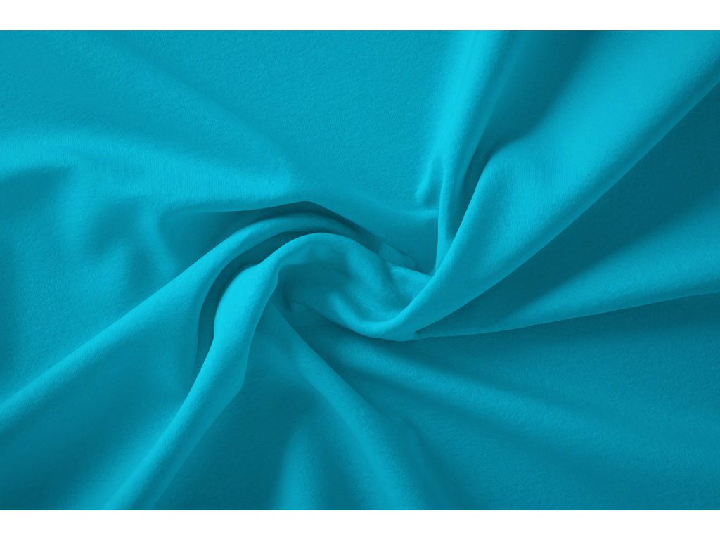 Nepočesaná jednobarevná teplákovina v modrém – šmoulím odstínu s příměsí elastanu.