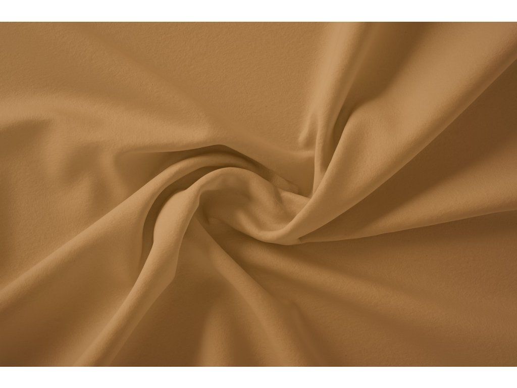 Nepočesaná hnědá teplákovina ve velbloudím odstínu je metráž bavlněné látky s malou příměsí elastanu, který zlepšuje pružnost látky.