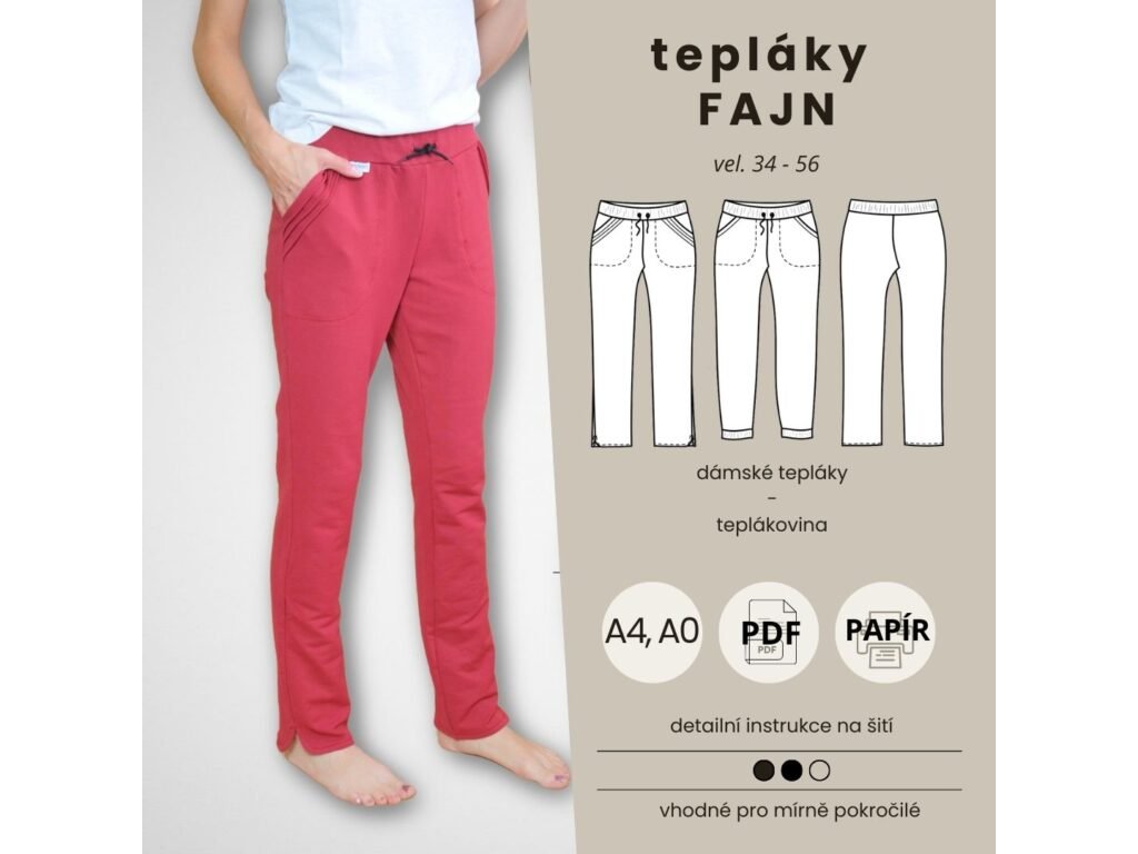 Tištěný střih DÁMSKÉ TEPLÁKY Fajn