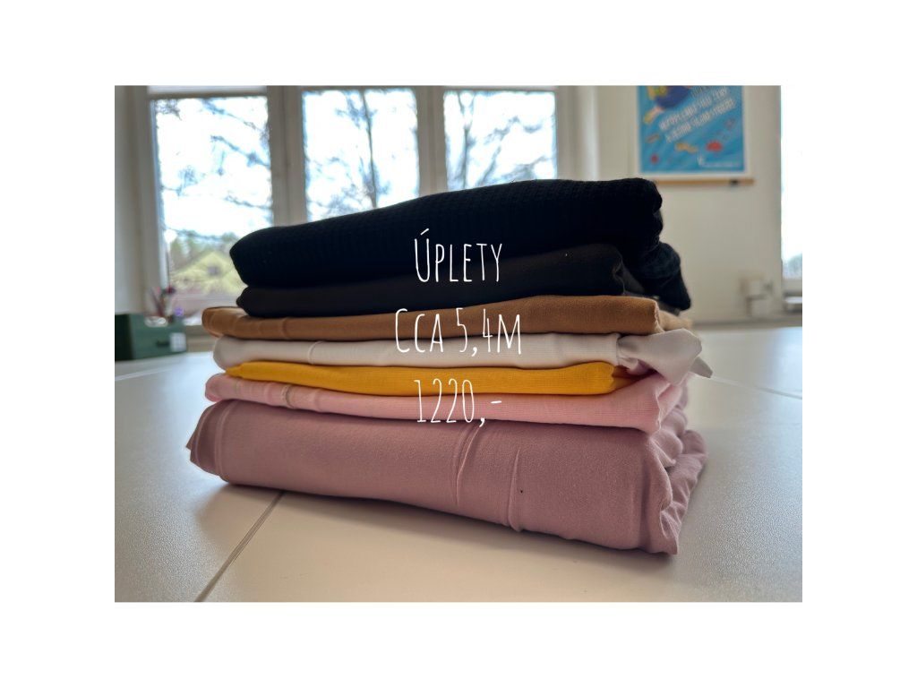 Dobrý den Marcelo, pokud máte na mysli zbytkový balíček s tisky (nahoře úplet s puntíky) tak je okolo 4,5m látek